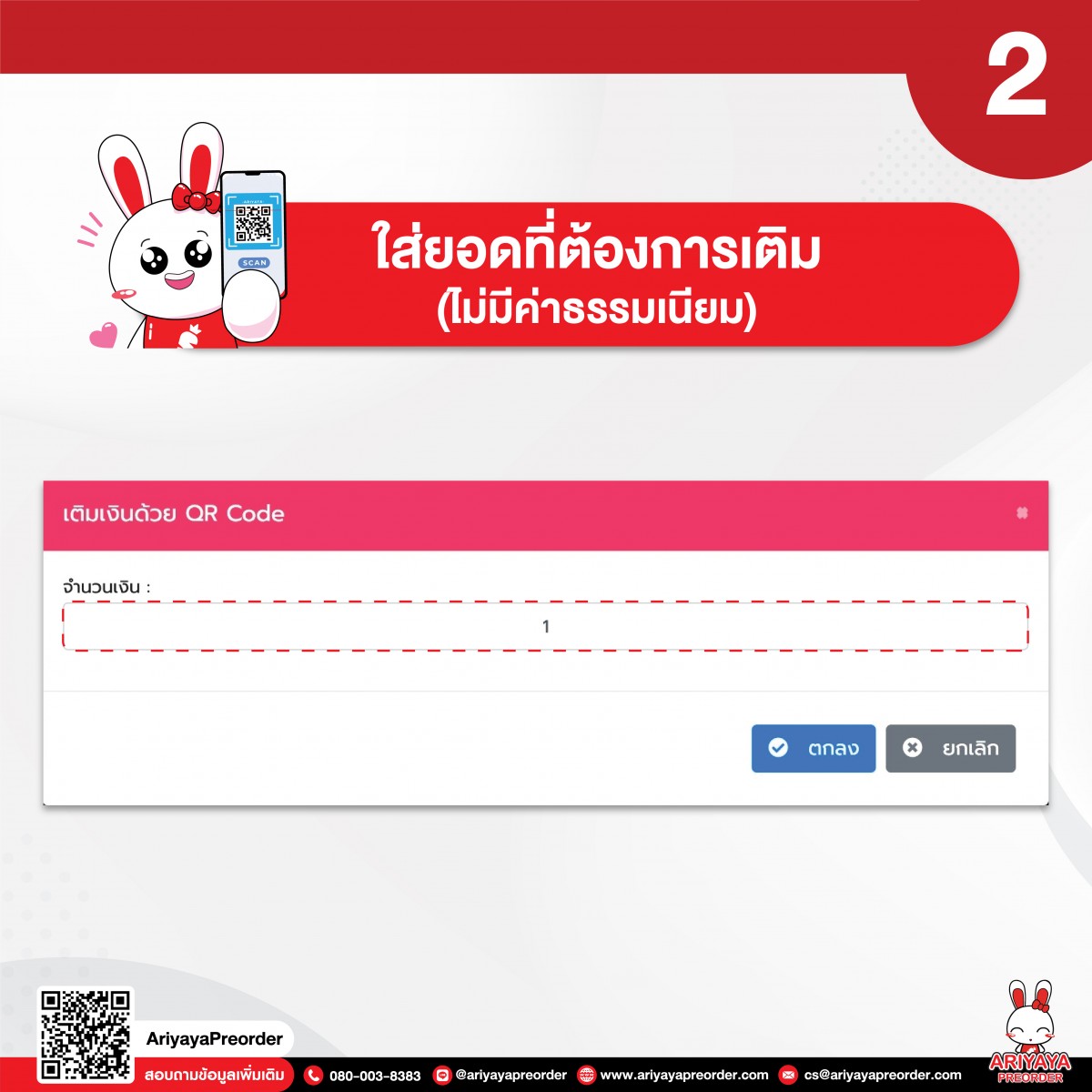 2. ใส่ยอดที่ต้องการเติม (ไม่มีค่าธรรมเนียม)