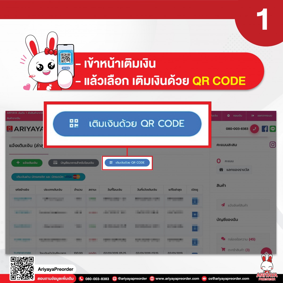 1. เข้าหน้าเติมเงิน แล้วเลือก เติมเงินด้วย QR CODE