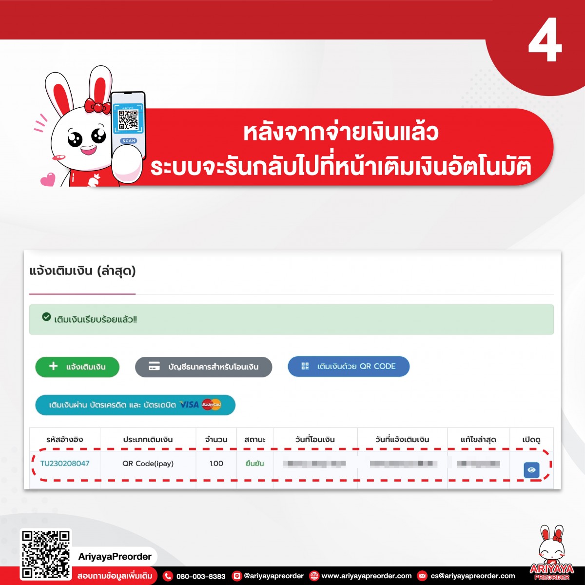 4. หลังจากจ่ายเงินแล้วระบบจะรันกลับไปที่หน้าเติมเงินอัตโนมัติ