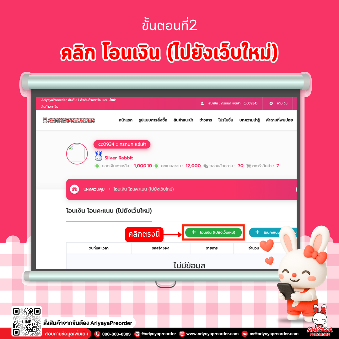 ขั้นตอนที่ 1 - คลิกไปที่ “โอนเงิน โอนคะแนน (ไปยังเว็บใหม่)”