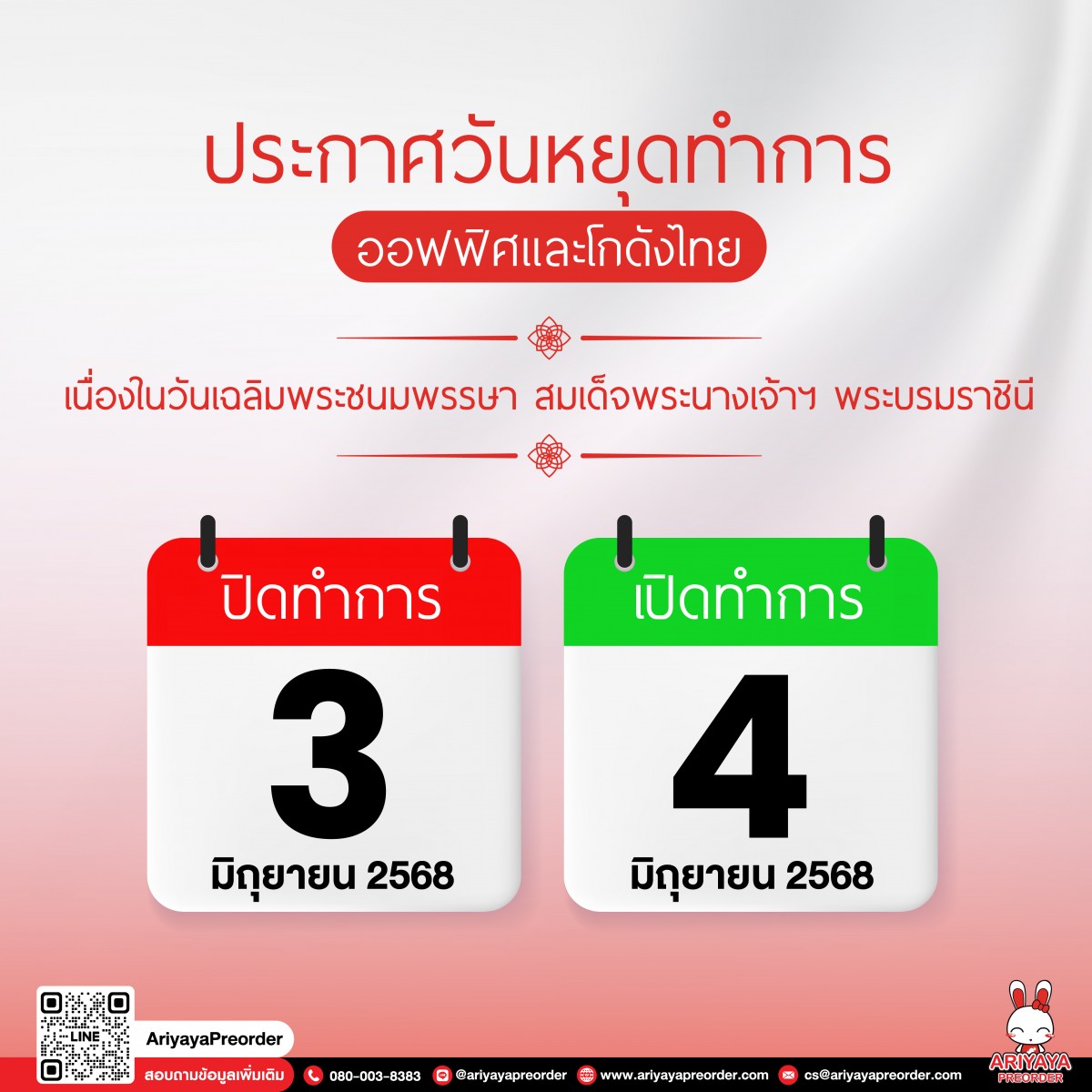 ทางออฟฟิศและโกดังไทย หยุดทำการในวันที่ 3 มิถุนายน 2568 และ จะเปิดให้ทำการในวันที่ 4 มิถุนายน 2568