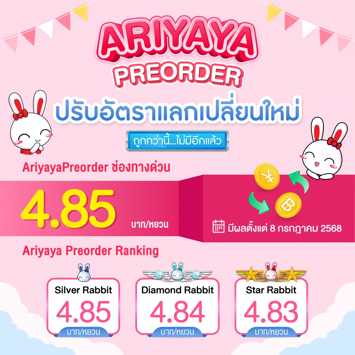 ARIYAYAPREORDER ปรับเรทอัตราแลกเปลี่ยนใหม่