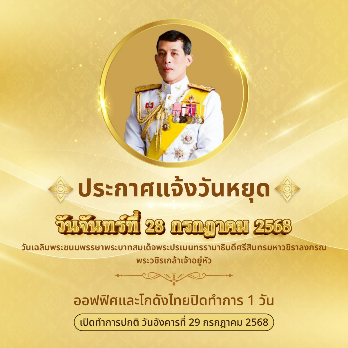 เนื่องในวันเฉลิมพระชนมพรรษาพระบาทสมเด็จพระปรเมนทรรามาธิบดีศรีสินทรมหาวชิราลงกรณ