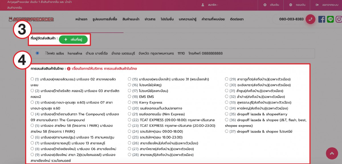 3.เลือกที่อยู่สำหรับการจัดส่งสินค้า