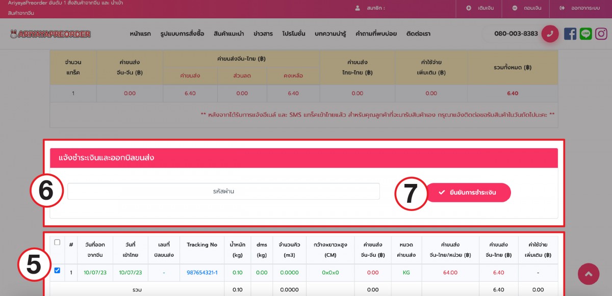 7.คลิกชำระบิลและออกบิลขนส่ง