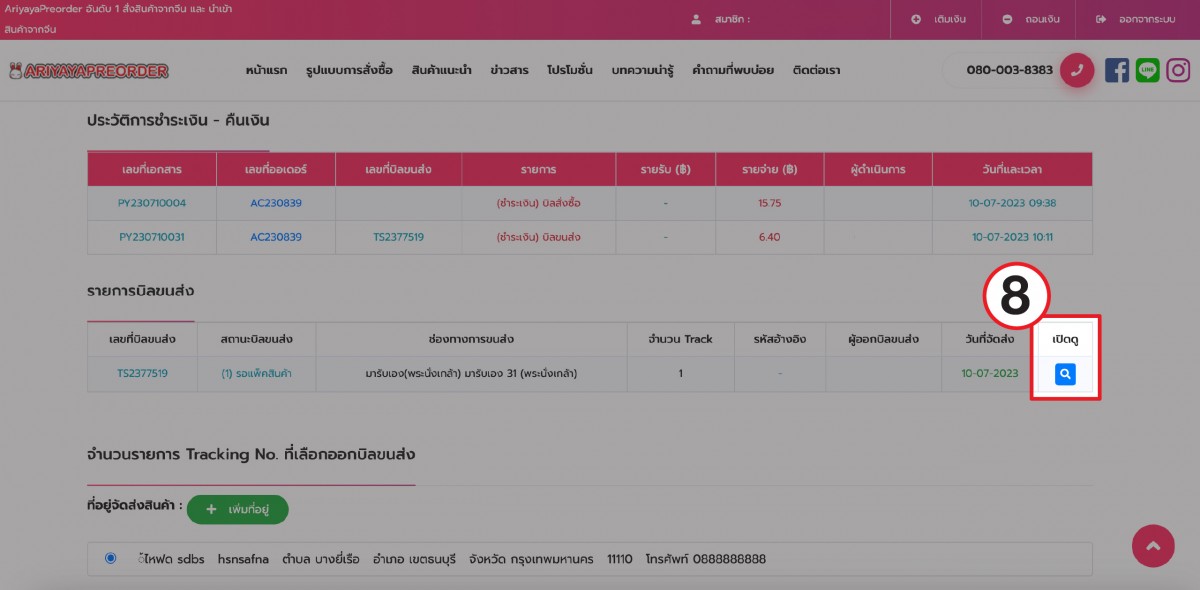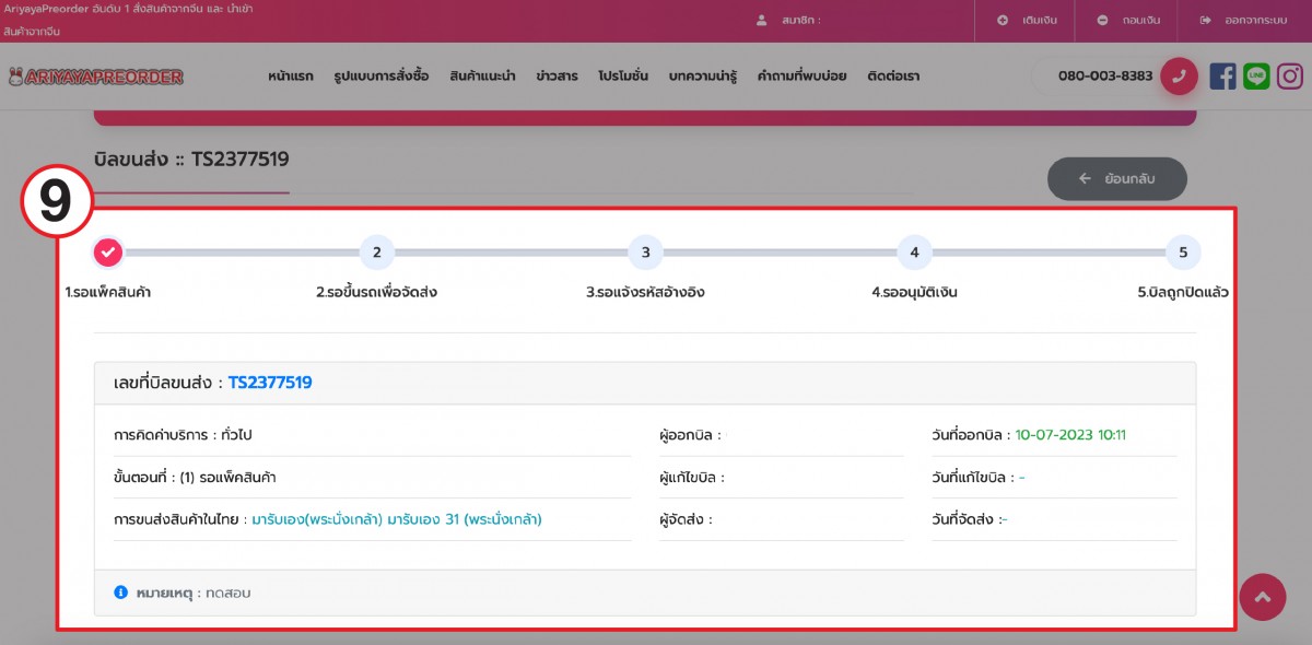 9.คุณลูกค้าสามารถดูสถานะการเคลื่อนไหวของขั้นตอนการจัดส่งได้ตามภาพที่ปรากฎได้เลยค่ะ
